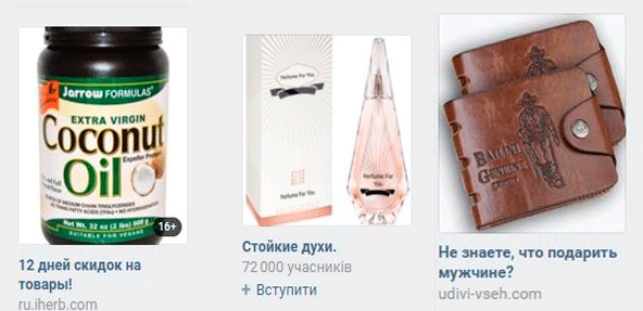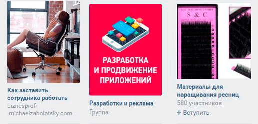 Безусловно, это далеко не полный перечень товаров и услуг. Отметим, что помимо сектора B2C социальная сеть ВК становится рекламной площадкой для B2B. Интернет-маркетинг, франшизы, информационный бизнес, другие направления можно эффективно продвинуть, обеспечив показ объявлений участникам профильных групп. Найти подходящие сообщества просто: достаточно вбить ключевое словосочетание в строку поиска.