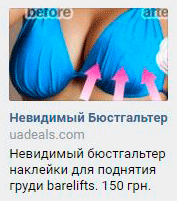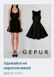 Технические требования такого варианта: длина заголовка − до 33 символов, возможно выделение жирным шрифтом, размер картинки − 145х165 пикселей. Продукт стоит использовать для рекламы группы, события, страницы, приложения. Из преимуществ такого объявления отметим большое изображение, из недостатков − ограниченное количество текста (сообщение на картинке не должно занимать более 50% площади).