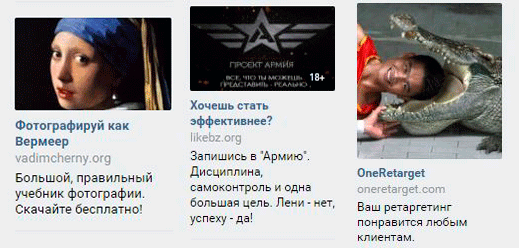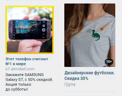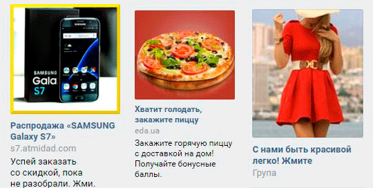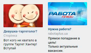 Существуют шесть наиболее распространённых вариантов изображений, используемых при рекламе в ВК: