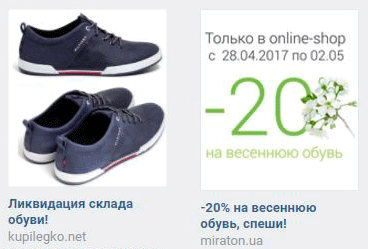 Плюсы такого формата − крупная картинка, которая позволяет поместить и название бренда, и само маркетинговое предложение.