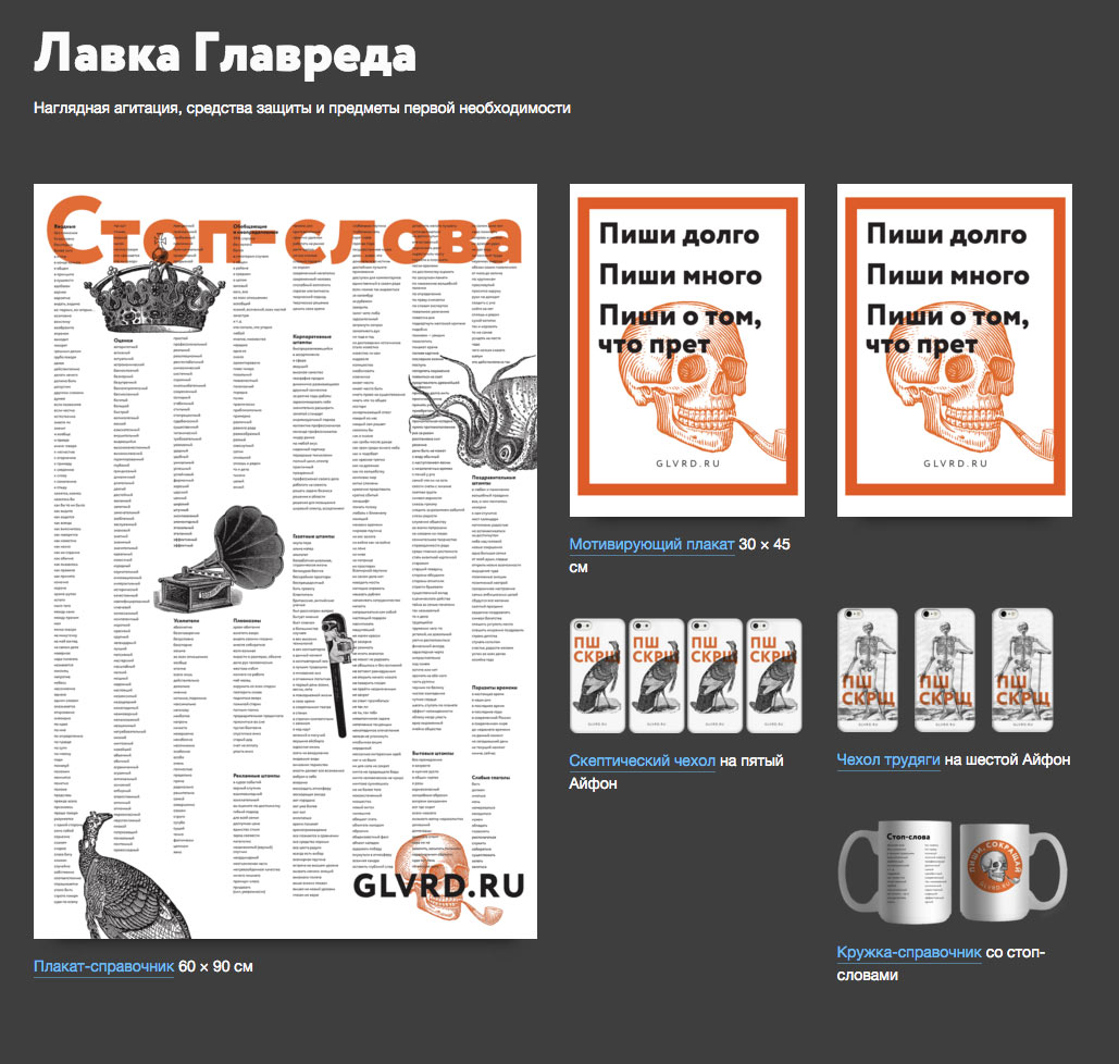 - Если вы онлайн-сервис, еще до Нового года подумайте о выпуске продукции со своим логотипом, но не примитивные ручки, а что-то интересное. После Нового года можно затеять акцию вроде «Докажи, что ты выжил после Нового года, — купи товар и получи подарок!». Ваша лояльная аудитория обязательно попробует заполучить прикольную фишку вашего авторства. Например, «Главред» нанес знания на бумагу, чехлы и кружки: