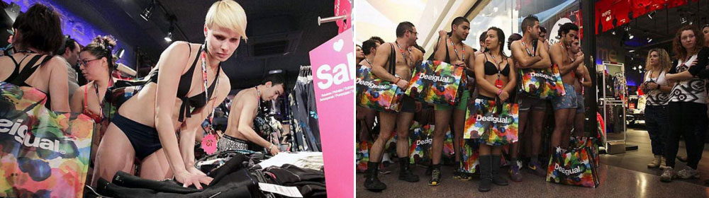 - Проведите шок-акцию, которая обязательно привлечет внимание, даже несмотря на «мертвый» сезон. Например, компания Desigual выбрала для проведения акции «Приди раздетым — уйди одетым!» 2 января. Первые 100 человек получали наряд бесплатно, последующие — 50% скидку. Фото с сайта Wiki.wildberries.ru: