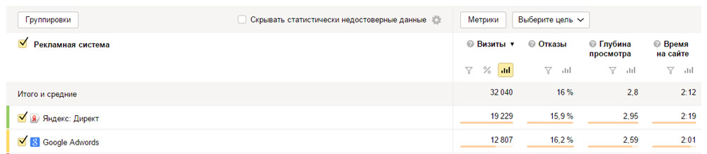 В отчете «Рекламные системы» узнаем, какая система приносит больше всего целевых визитов. В сводке по Директу ищем эффективные и не очень рекламные кампании.