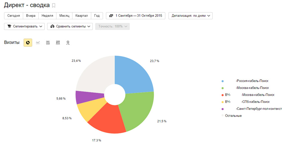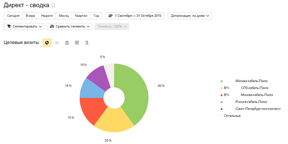 Важно: эффективная рекламная кампания – это не та, которая приносит больше всего трафика, а та, которая приносит больше всего целевых визитов. Почему не конверсий? Потому что конверсия – величина относительная и ею можно легко обмануться.