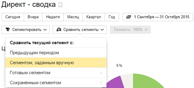 - Сегментировать данные и сравнить сегменты. Например, для разных источников сравнить: число вернувшихся и новых посетителей, отказы, объемы мобильного трафика и т.п.