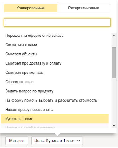 Теперь выбираем цель «Купить в 1 клик» и смотрим, какие кампании приносят именно целевой трафик. При выборе цели картинка меняется:
