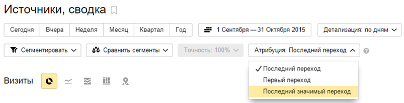Еще пригодится переключатель «Модель атрибуции»: