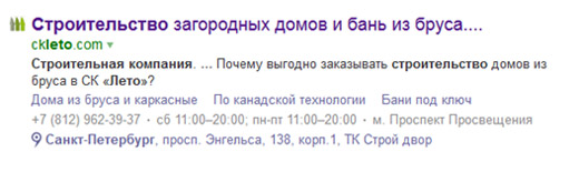 Покажем на примере: посчитаем целевые показатели поискового трафика для сайта питерской компании «Лето» (www.ckleto.com – строительство домов и бань из бруса). В конце сентября 2015 они пришли к нам на комплексное продвижение.