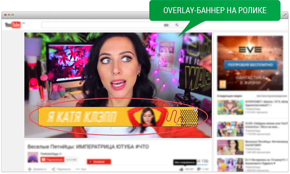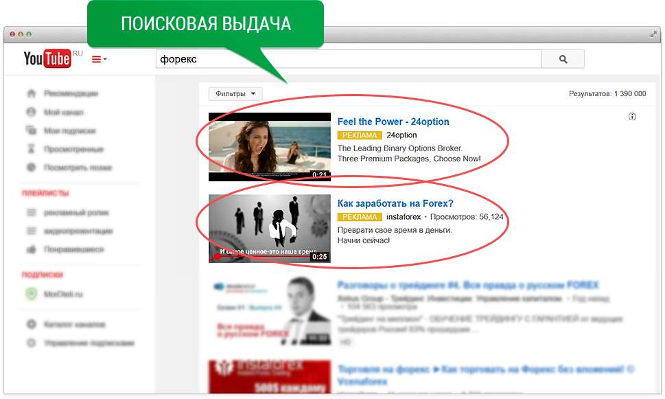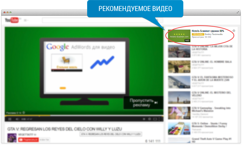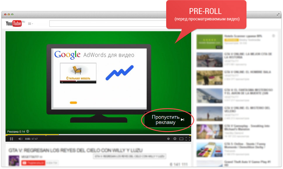 Вашей рекламой может стать любое видео, загруженное на YouTube. Ее можно показывать перед другими роликами, рядом с ними во время воспроизведения, а также в результатах поиска.