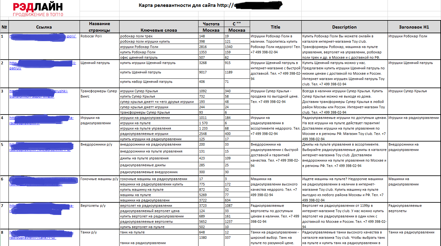 К нему постоянно обращаются и SEO-специалисты, и копирайтеры при выполнении работ по продвижению сайта. Можно сказать, что карта релевантности служит неким контент-планом: копирайтеры видят, под какие запросы необходимо писать тексты для той или иной страницы. Также благодаря этой таблице можно избежать дублирования запросов.