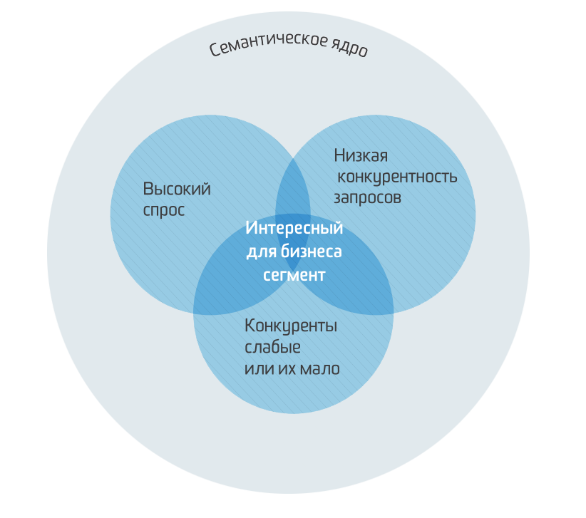 Составляя смысловое ядро, мы отвечаем на глобальный вопрос: какую информацию можно найти на сайте. Поскольку одним из главных принципов бизнеса и маркетинга считается клиентоориентированность, на создание семантического ядра можно смотреть с другой стороны. Нам нужно определить, с помощью каких поисковых запросов пользователи ищут информацию, которая будет опубликована на сайте.